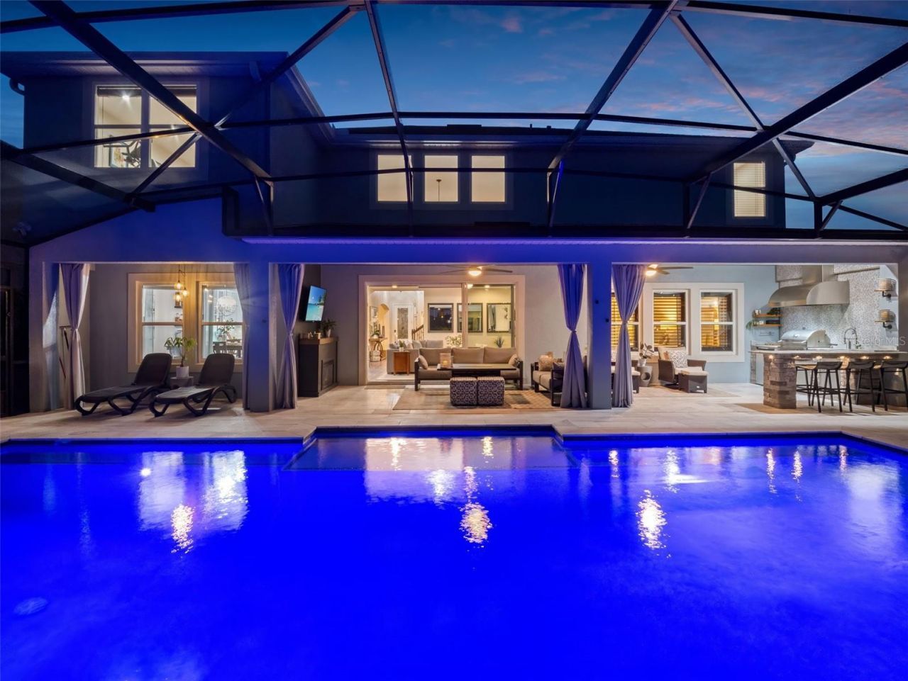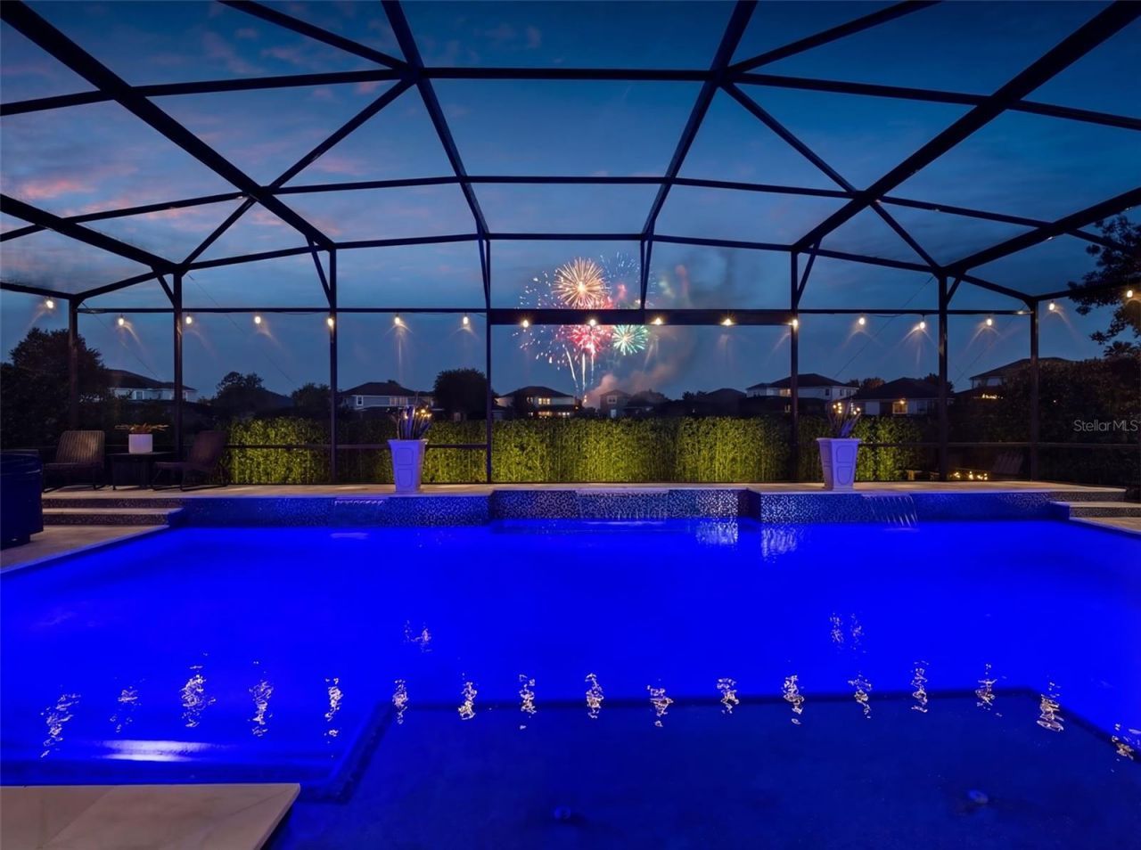 Welcome to Horizon West living at its finest in the highly sought-after Overlook at Hamlin community, home of top-rated schools. This exceptional pool home is perfectly positioned on a premium oversized lot offering over 4k SF with lake views in the front and fireworks views in the back. The thoughtfully designed living space has a northwest-facing orientation, allowing you to enjoy breathtaking sunrise views from your backyard oasis and stunning sunset views from the front.This luxurious and meticulously maintained upgraded home features 4 to 6 bedrooms, 3.5 bathrooms, and a highly desirable first-floor primary suite designed for comfort and privacy. The open-concept floor plan is enhanced by a spacious loft and multiple flex spaces, including dedicated offices or additional bedrooms on both levels, each with elegant French doors. The expansive living area is anchored by a custom 20-foot entertainment wall complete with built-ins, a fireplace, and integrated sound, creating the perfect setting for both relaxation and entertaining.The chef's kitchen is a true showpiece, upgraded with brand-new commercial-style Café luxury appliances (2026), gas cooktop, custom cabinetry with soft-close features, designer backsplash, upgraded lighting, and an oversized custom pantry with a butler's area. Multiple dining spaces, including a formal dining room and eat-in kitchen, offer versatility for gatherings both large and intimate.Additional major upgrades provide peace of mind and modern efficiency; two brand-new Carrier AC systems (2026) with a 10-year warranty, whole-house water purification and softener system, and new LED lighting in the pool. The home also includes 2 tankless gas water heaters and features high-end finishes throughout, including commercial-grade luxury vinyl flooring, premium carpeting, fresh interior paint, designer lighting, and smart home enhancements such as remote-controlled window treatments and extensive wall-mounted TV connections.Step outside to your private resort-style retreat, featuring a custom 600-square-foot saltwater pool with marble decking, sun shelf, waterfall features, and panoramic screened enclosure designed to maximize views of Disney fireworks. A separate spa, added in 2024, creates the ultimate relaxation experience. The outdoor living space is complete with a fully equipped summer kitchen, built-in bar, tongue-and-groove ceilings, and professionally designed landscaping with privacy hedges and palm trees. With no direct rear neighbors and a dry retention pond behind, this home offers exceptional privacy and serene surroundings.Additional exterior highlights include an extended driveway, oversized two-car garage with space for a golf cart, full fencing with multiple access points, exterior lighting, gutters, and security features, including cameras and motion lighting.Located just a half-mile from Hamlin Town Center, this home is accessible via walking trails, golf cart, or a 1-minute drive to shopping, dining, and entertainment. Residents of the Overlook community enjoy resort-style amenities, including a clubhouse, fitness center, community pool with splash area, walking trails, dog park, playgrounds, fishing pier, and private boat ramp access to Lake Hancock.This is a rare opportunity to own a move-in-ready luxury home in one of Winter Garden's most desirable locations, where you can experience elevated Florida living at its best. Set up a showing today before it's gone.