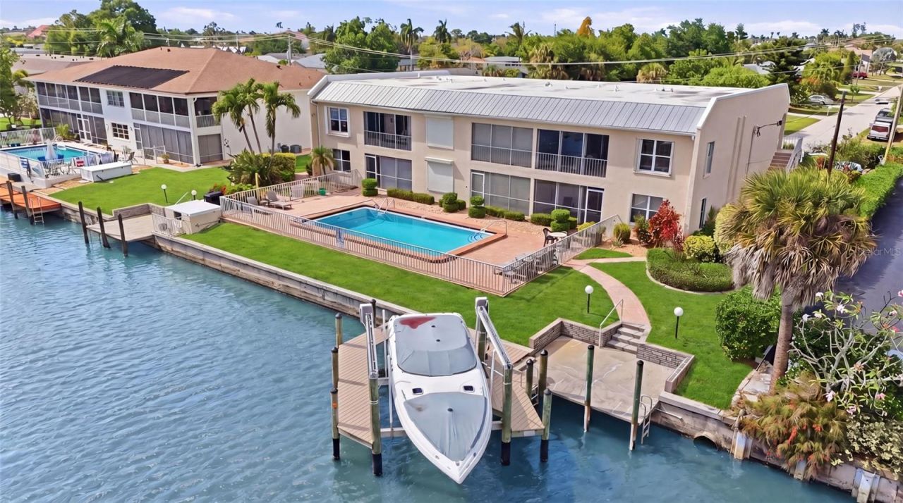 Sun-drenched, waterfront-inspired living meets the vibrant energy of Downtown Cape Coral in this exceptional corner end-unit-an offering that effortlessly blends coastal elegance, investment potential, and an unbeatable location. Perfectly positioned within an intimate, beautifully maintained community of just six residences, this turnkey furnished 2-bedroom, 2-bath condo delivers both privacy and convenience, making it an ideal full-time residence, seasonal retreat, or high-performing rental opportunity. Bathed in natural light from its coveted southern exposure, this bright and airy home showcases a seamless indoor-outdoor lifestyle, highlighted by a spacious screened-in lanai where you can unwind, entertain, and take in breathtaking sunset skies. Every detail invites relaxation, creating a peaceful sanctuary just moments from the excitement of downtown living. Designed with boating enthusiasts in mind, this property offers a rare opportunity to reserve a private boat dock and lift, with renderings available-placing you just a short 10-minute ride from the Caloosahatchee River and open Gulf waters beyond. Whether it's spontaneous sunset cruises or weekend adventures on the water, this is true Southwest Florida living at its finest. Located just a quick walk or bike ride to Cape Coral's iconic 47th Terrace, you'll find yourself immersed in a dynamic waterfront lifestyle filled with top-rated dining, boutique shopping, live entertainment, and year-round events. Yet, within your own residence, you'll enjoy a quiet, serene atmosphere that feels worlds away. This pet-friendly community-with no age restrictions-offers exceptional flexibility, including seasonal rental options (up to twice per year) or annual leasing. With a strong rental history, this property stands out as a smart and versatile investment. Opportunities like this are rare-where location, lifestyle, and long-term value converge into one unforgettable property. Whether you're drawn by the boating access, the walkable downtown lifestyle, or the effortless turnkey convenience, this residence is a must-see for those seeking their own slice of paradise in Cape Coral.